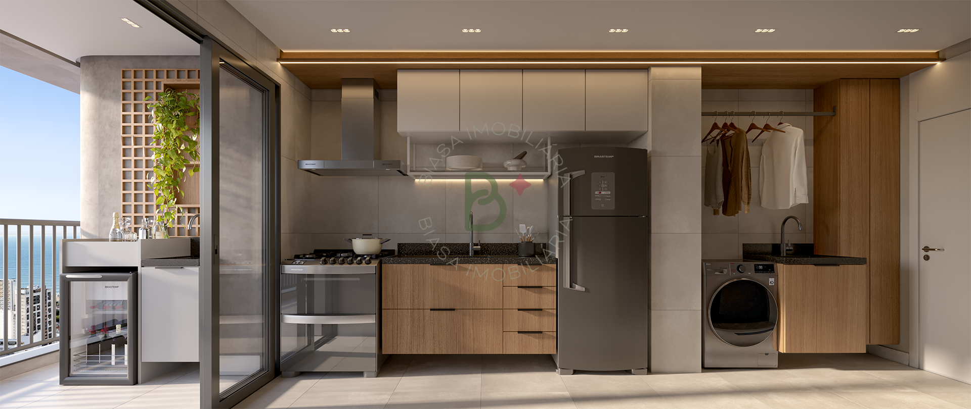 -Integração entre varanda e cozinha